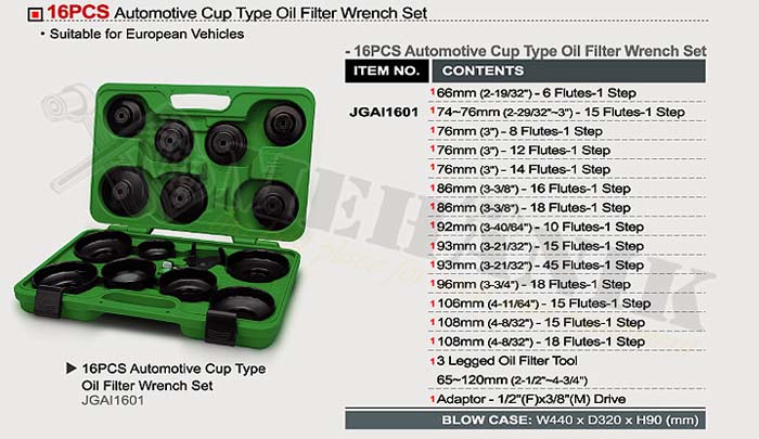 Комплект чашки за маслен филтър 16 части TOPTUL - Смяна на масло-Авто